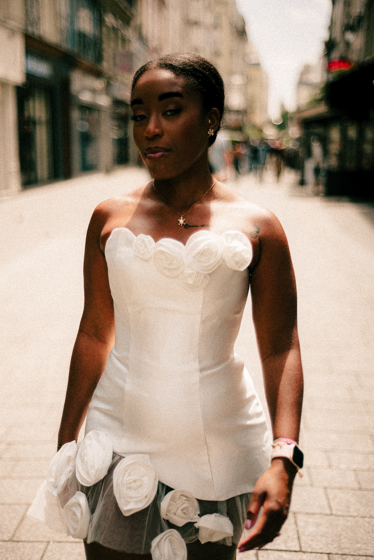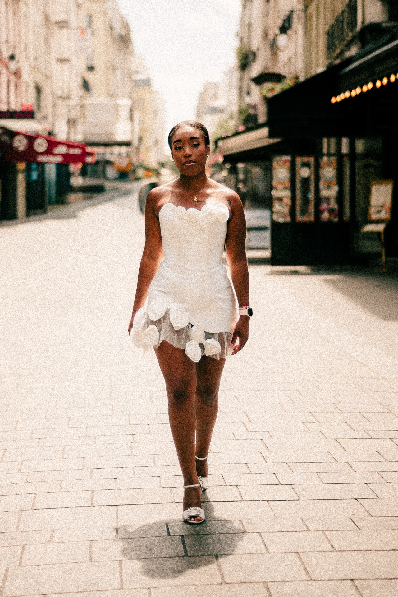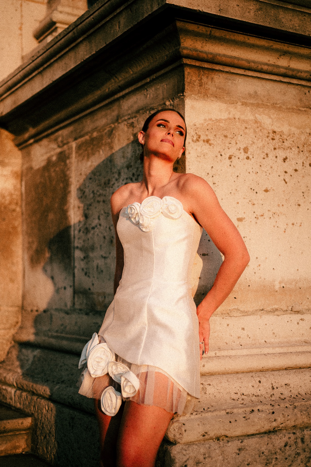 Pensée comme une pièce signature, cette création mêle élégance florale et attitude affirmée. Inspirée des années 90 et des podiums de haute couture, elle est idéale pour la mariée contemporaine, libre, et absolument inoubliable.